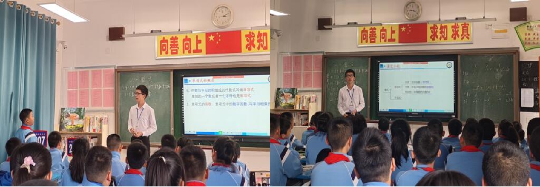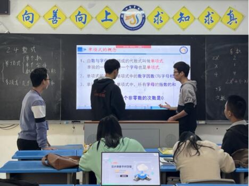 实习带队老师丁爱霞老师精心安排了本次公开汇报课——由实习队的陶鹏旭讲授七年级上册的《整式》,邀请了学院领导老师和以张频董事长为代表的多位经验丰富的江声实验学校老师前来检查和指导。