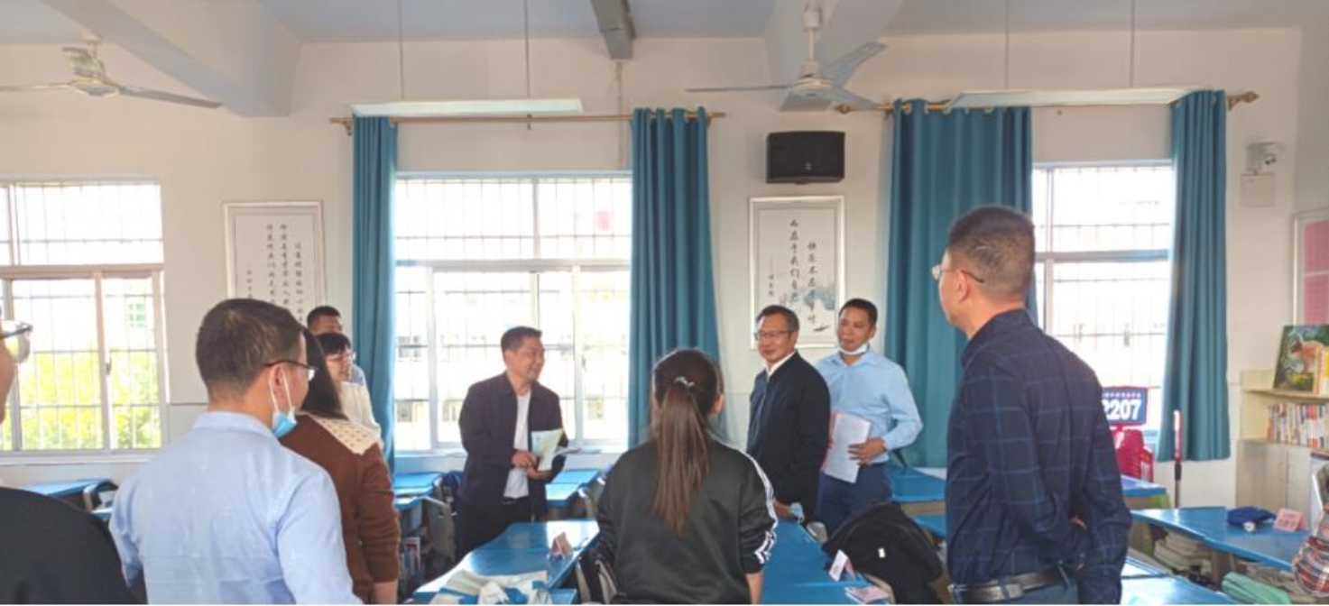 2022年10月19日下午,数学与计算科学学院黄伟书记、彭叶辉副经理、汪卫副经理、龙文高系主任与教务办彭秀芬主任一行五人上午看望慰问了湘潭县第九中学的实习生后,下午又来到湘潭江声实验学校看望数学系19级在外实习的学子们。