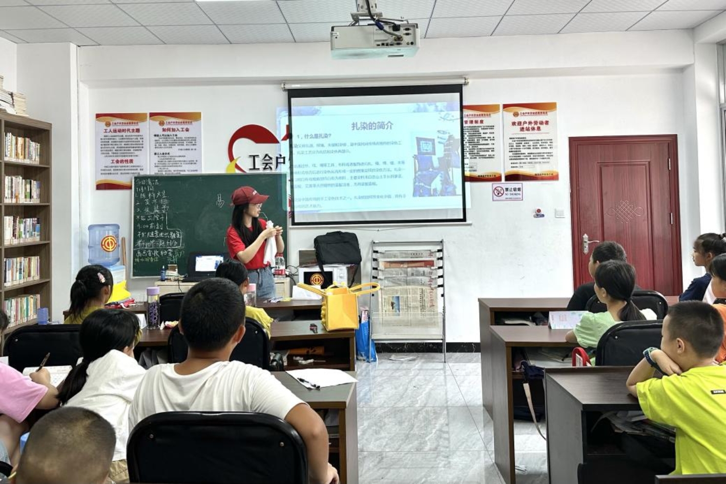 此外,“数梦空间”暑期科技服务团在合山社区开展了丰富多样的实践服务活动,其中包括:STEM教育小课堂、创意扎染、“我心中的祖国”绘画活动等,并且开展了心理健康、防溺水、防电信诈骗、防范自然灾害等一系列主题活动。