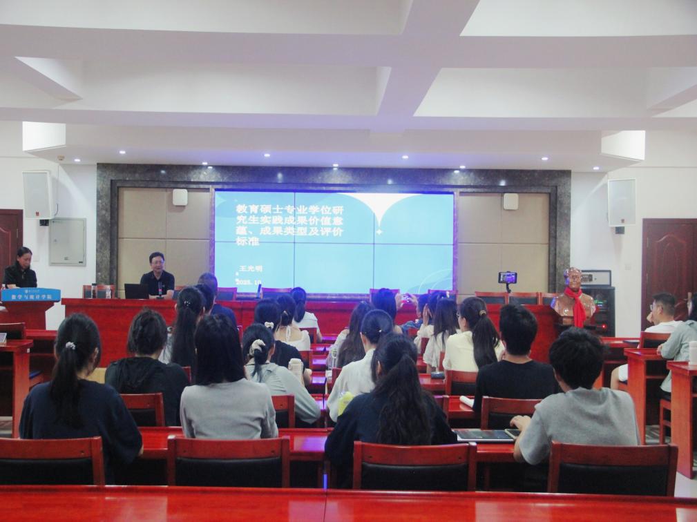 2025年10月12日下午三点,球王会特邀天津市教育科学研究院副经理王光明教授,在立志楼A601作了题为《教育硕士实践成果的价值意蕴、类型特征与评价标准》的专题讲座。本次讲座由汪卫副经理主持,吸引了众多师生参与。