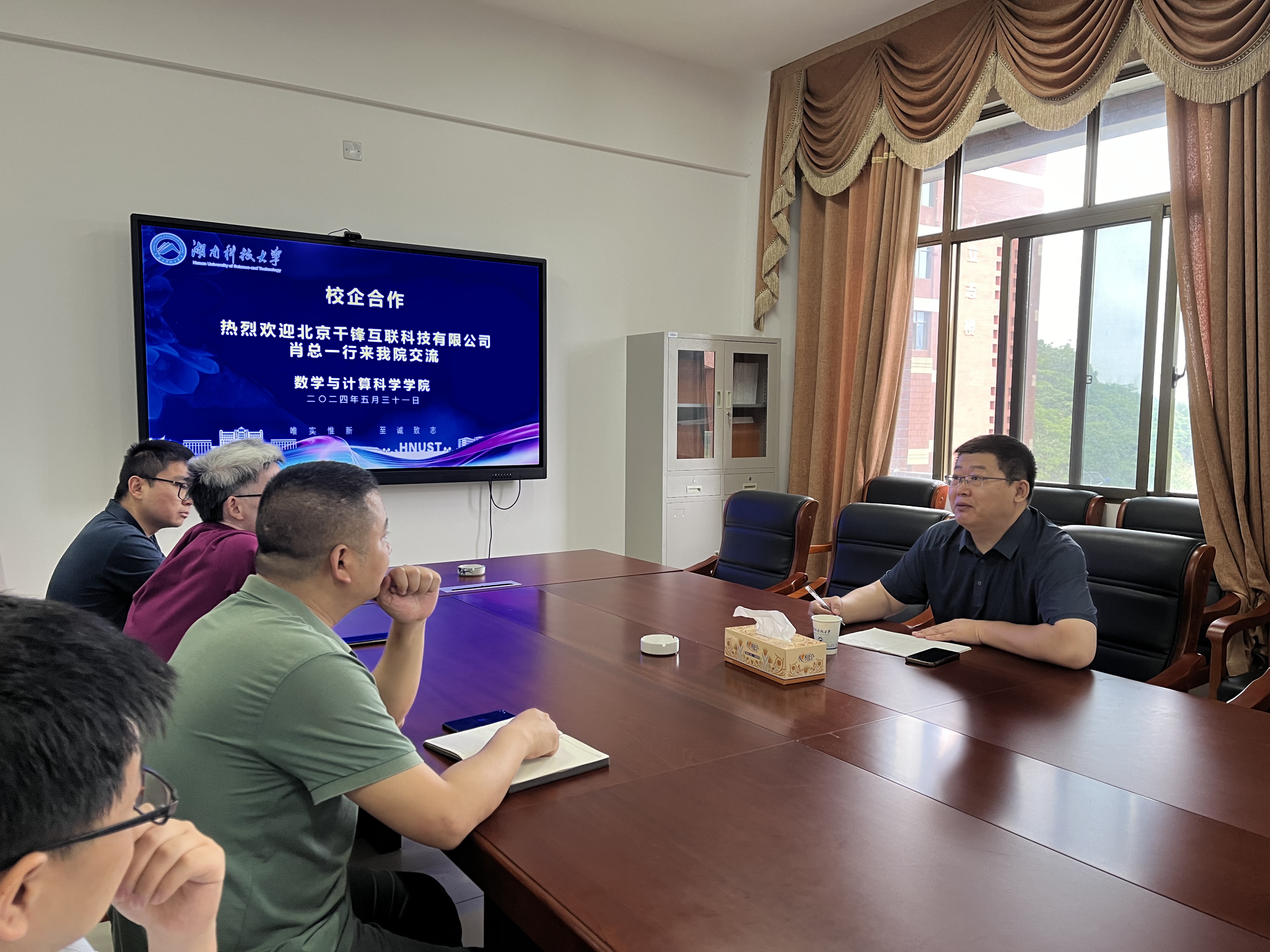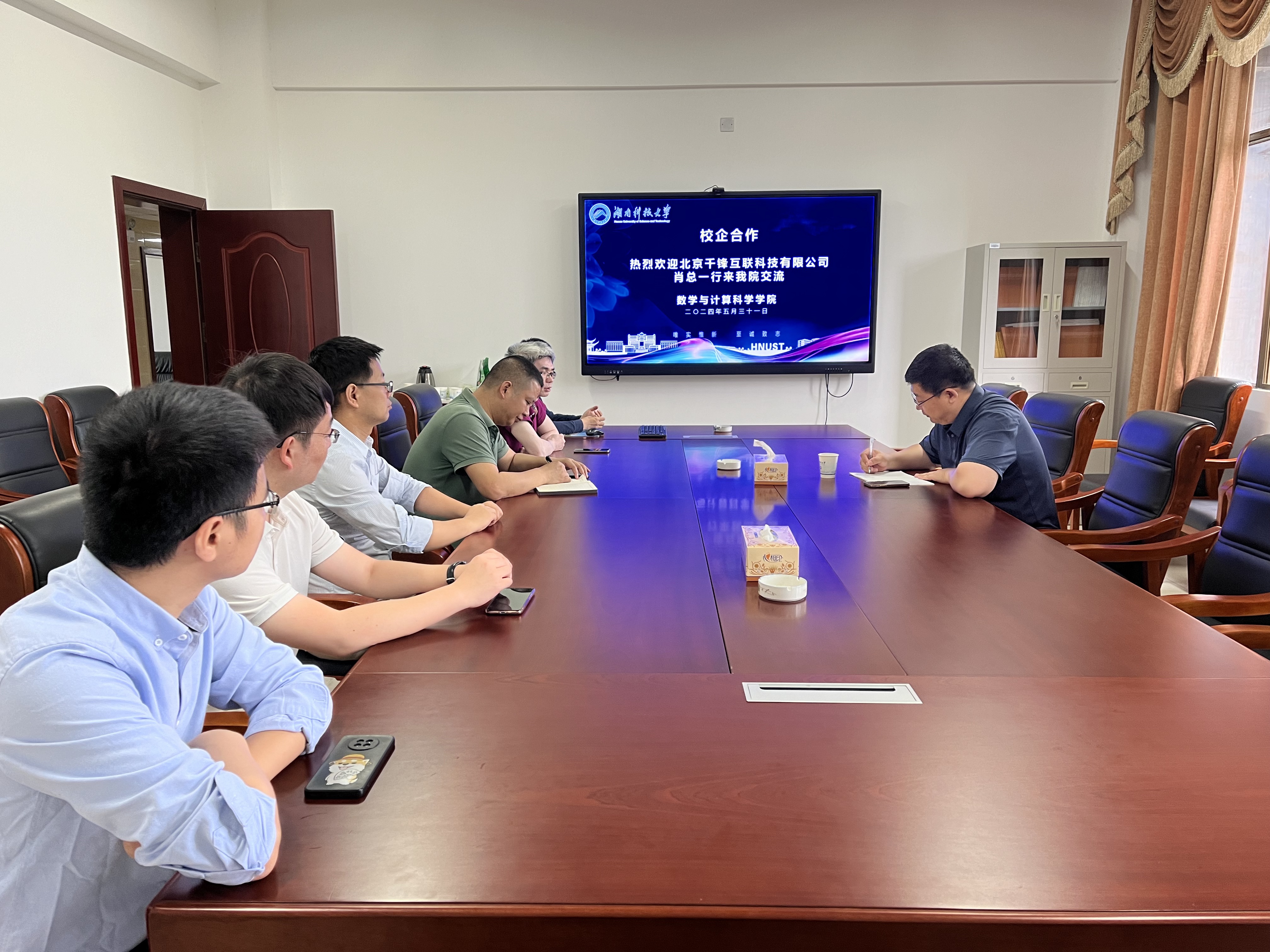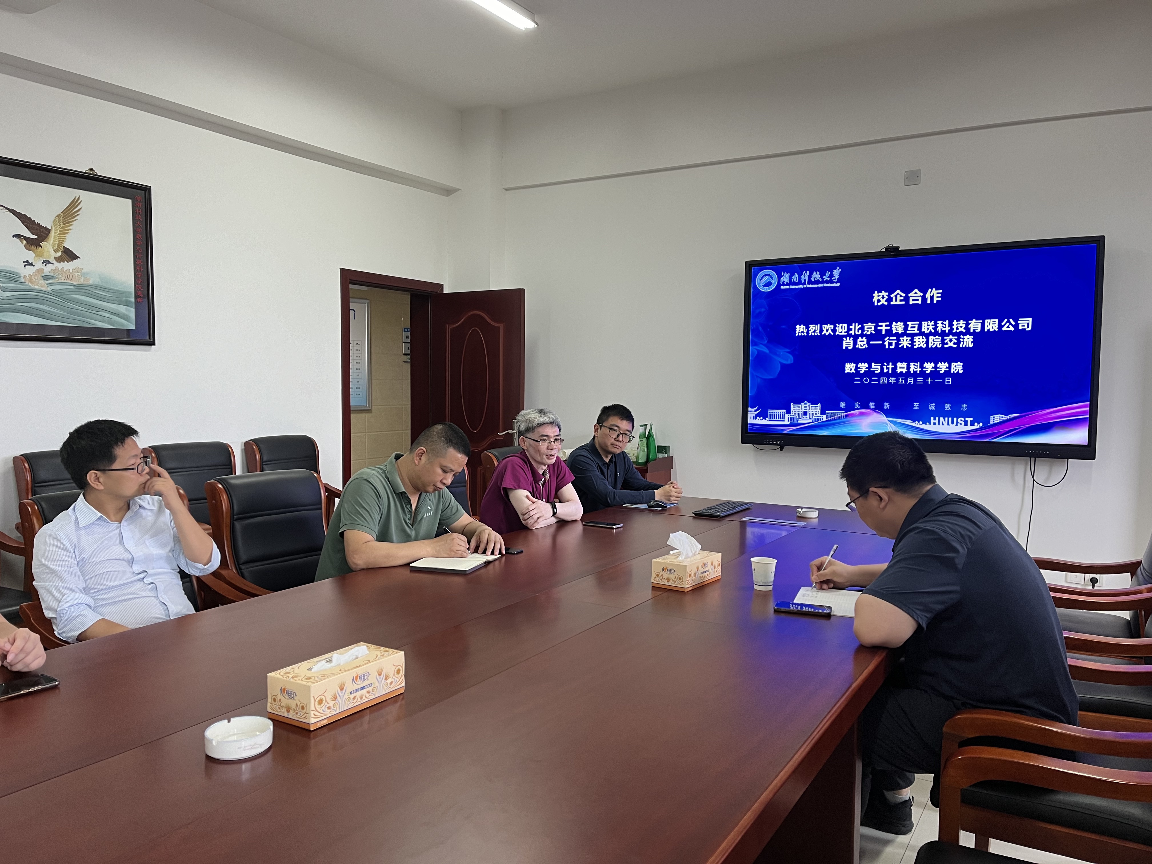 2024年5月31日,北京千锋互联科技有限公司肖刚总监来公司交流。副经理彭叶辉、副经理汪卫、系主任出席了座谈会。