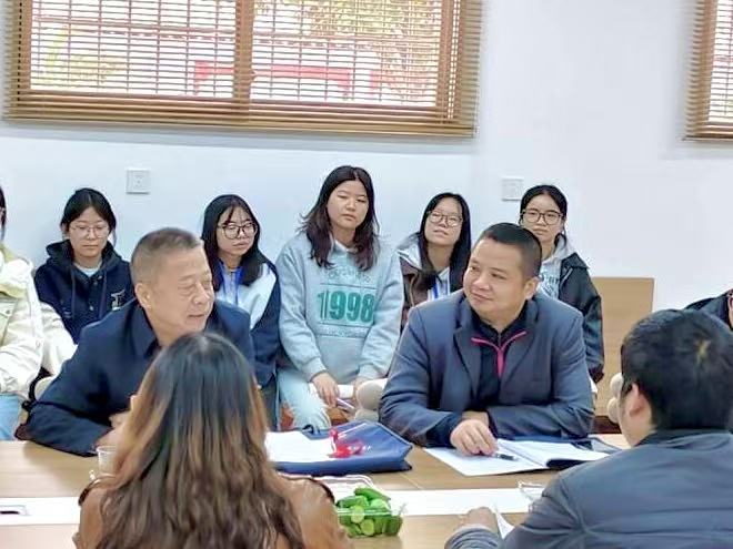 为了深入了解实习生岗位实践情况,10月22日,球王会校级督导胡小平教授、汪卫副经理、数学系主任龙文高、22级辅导员罗鑫等老师前往湘潭凤凰中学看望实习生。在凤凰中学综合楼一楼梧桐书院,数院领导团队对湘潭凤凰实习生队表示了亲切的问候。