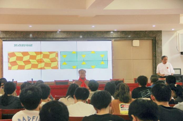 “同学们,要用数学眼光审视和研究现实世界。”林亚南教授以阿基米德密铺为开篇,通过冬奥会火炬台“大雪花”的例子,向大家展示了数学在实际生活中的应用和魅力,把抽象数学变得生动具体。随后,林教授深入讲解了凸多边形单密铺的悠久历史,揭示了15种五边形铺砖历经百年演变的过程,同时展望了非周期密铺的最新研究,也展示了这一领域的前沿成果。