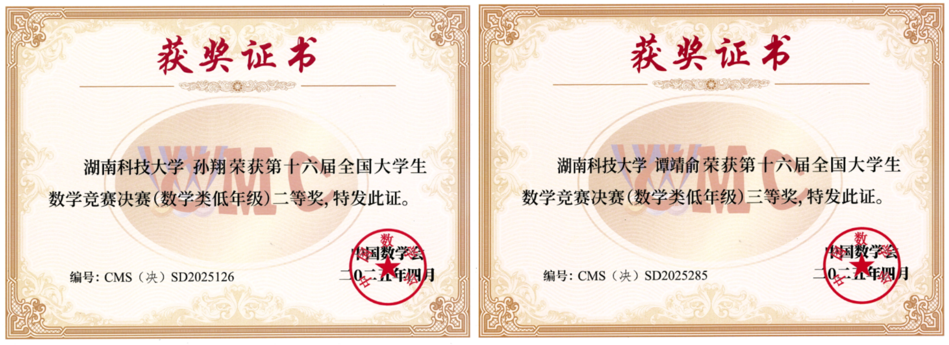 2025年4月12日,由中国数学会主办、浙江师范大学承办的第十六届全国老员工数学竞赛决赛在浙江省金华市圆满结束,球王会23级数学1班孙翔、谭靖俞同学分获数学类低年级组二等奖、三等奖。