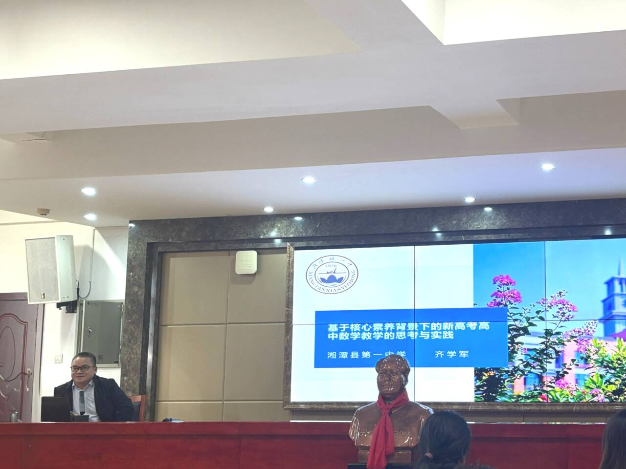 2025年11月14日,湘潭县一中齐学军书记开展“基于核心素养背景下的新高考高中数学教学的思考与实践”主题研讨。他推介“五思”学科思维教学法,结合命题研究拆解高考趋势,为高中数学教学改革提供实操思路。