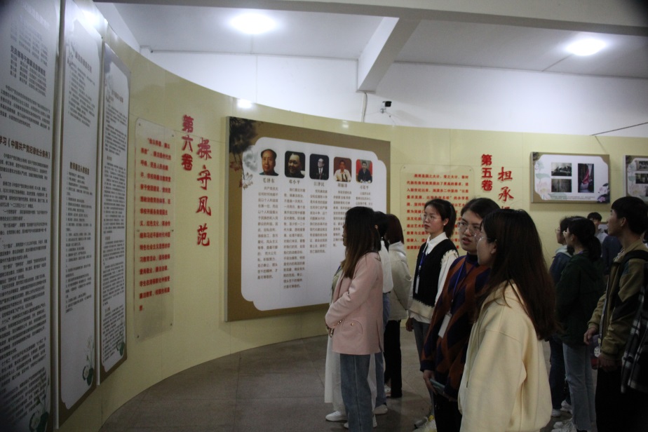 一同参观的18数学一班茹智利同学说:“我懂得了更多关于湘潭市二中的历史文化和党史教育的发展历程。我不禁对抗战爆发时期仍然高擎着教育兴国火炬的员工们产生崇高的敬意,同时也让我更加笃定了从事教师这一伟大的职业的决心。”
