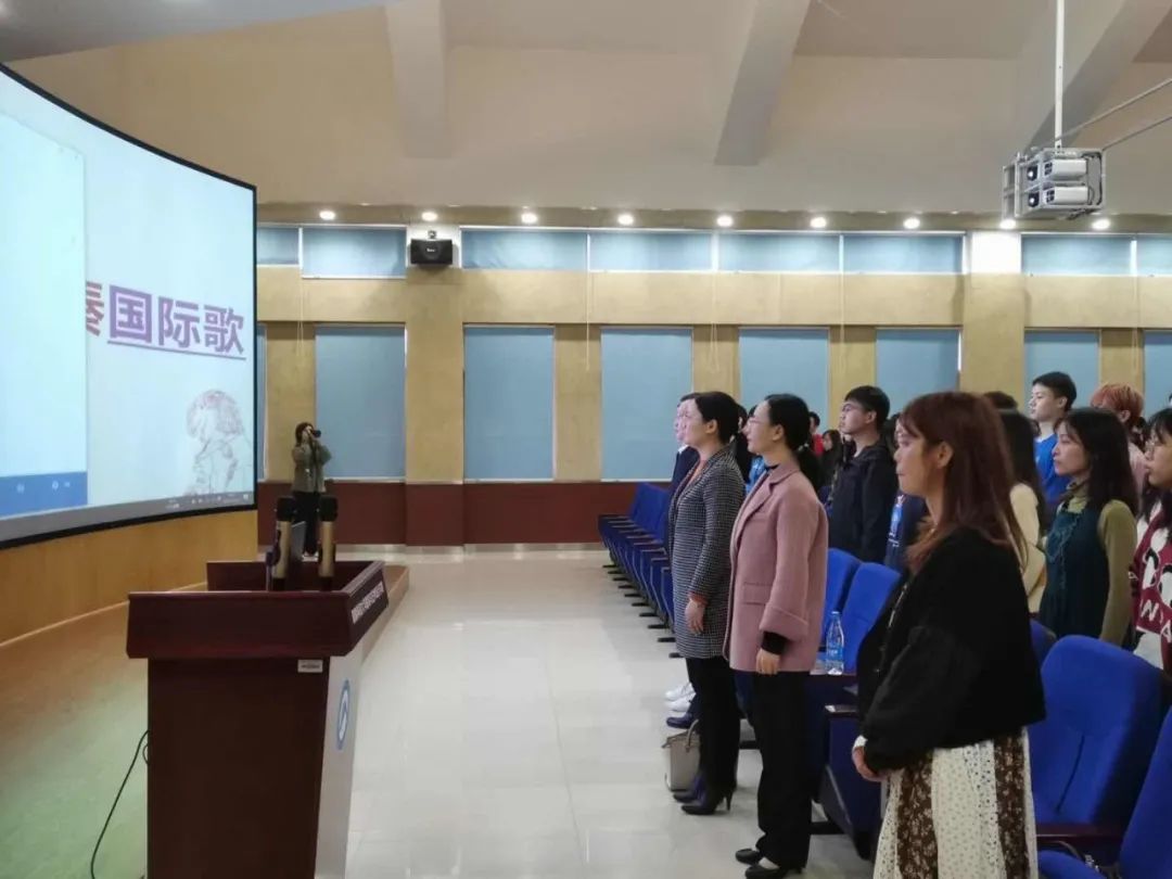 本次典礼由建筑与艺术设计学院员工干部伍清岚主持。典礼的开始,首先全体起立,奏响《国际歌》。