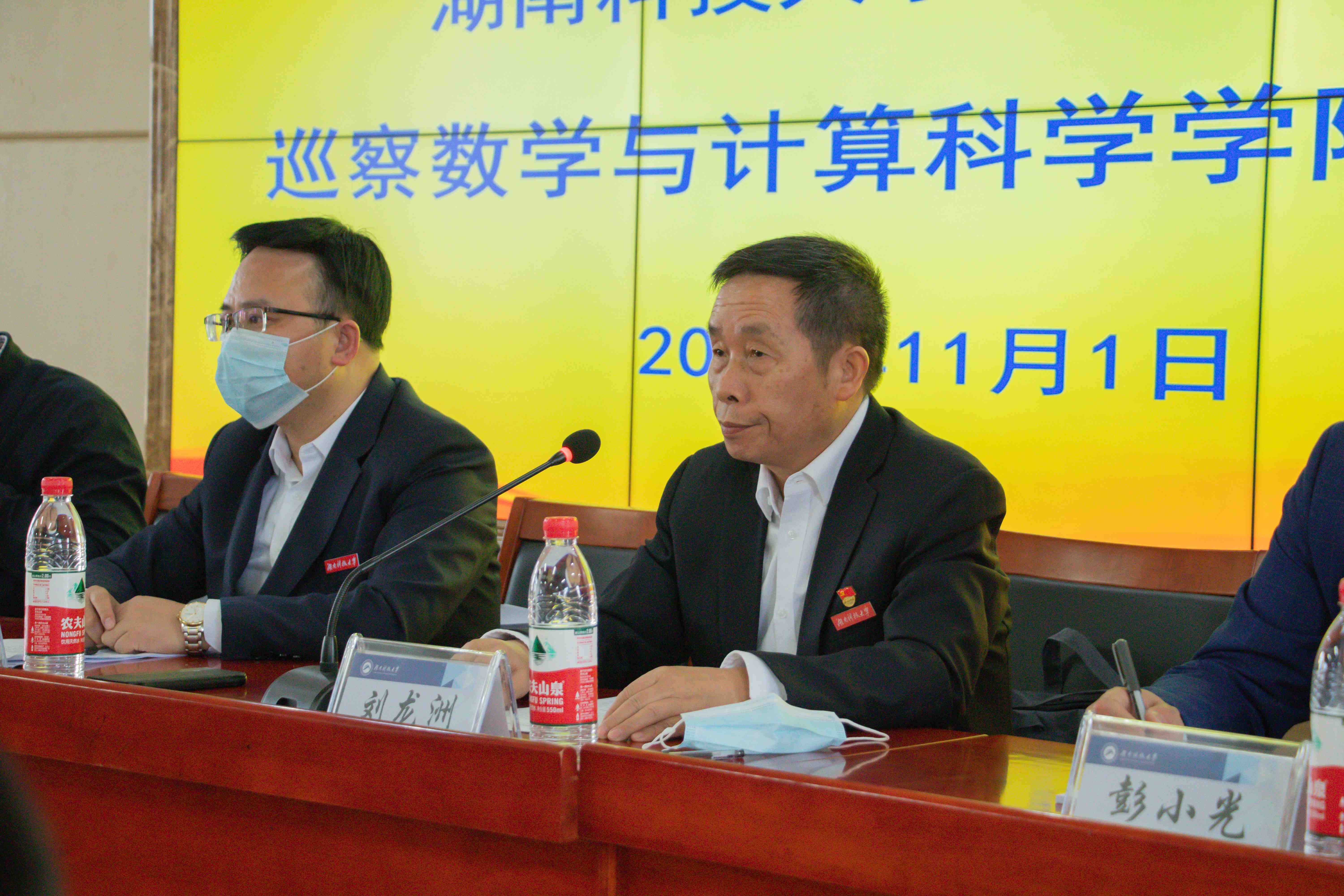 根据公司党委安排部署,11月1日下午,球王会体育官网党委第一巡察组巡察数学与计算科学公司党委动员会在立志楼A601会议室召开。大会由经理黄荣主持,校纪委书记郭时印、巡察组组长刘龙洲、副组长彭小光及巡察组全体工作人员、巡察办主任卢共平、数学与计算科学公司党政领导班子成员、全体在职员工和退休教职工代表、员工代表参加了动员大会。