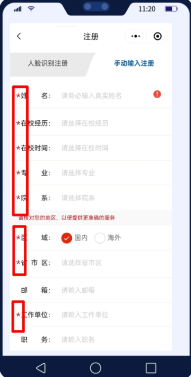 ❷您可以选择人脸识别和手动输入两种方式进行注册。