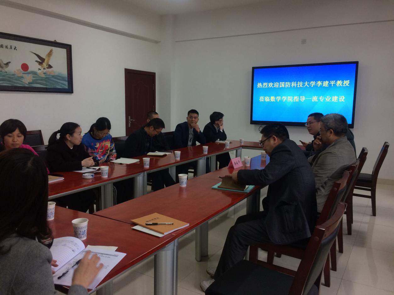 2021年4月28日上午10点,国防科技大学数学系李建平教授应邀来学院指导一流专业与一流课程建设。会议由黄荣经理主持,学院领导、正副系主任、部分教师参加了会议。