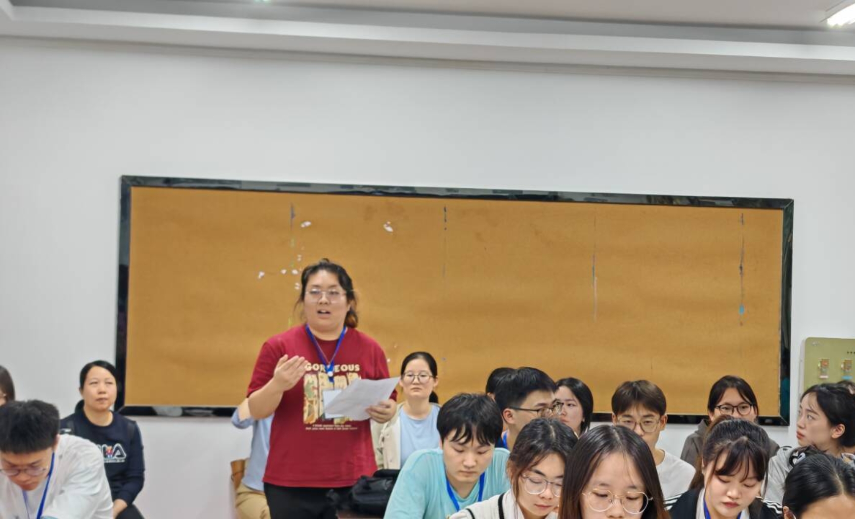 会后,领导和指导老师以及全体实习生听取了球王会刘梦霞、关金龙以及外国语学院邓红红三位实习生的公开课。