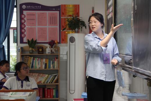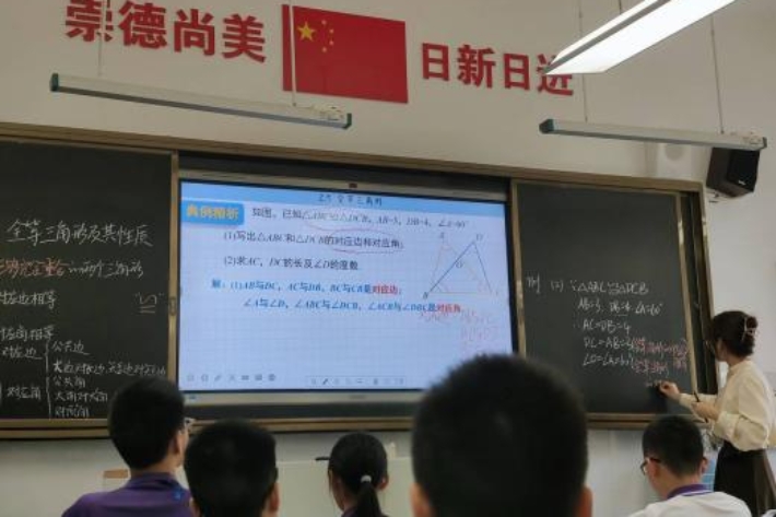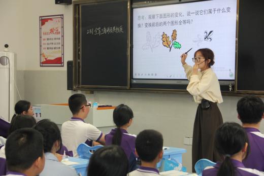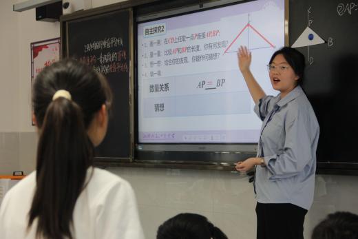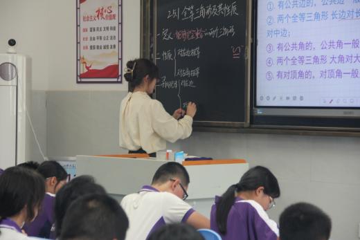 随后,领导们一同移步到日新楼,听两位实习老师精心准备的数学课堂。首先是实习老师刘思雨带来的课堂:《线段垂直平分线的性质与判定》。然后是由实习老师刘欢带来的课堂:《全等三角形第一课时性质》。在课堂中,实习老师们讲课生动有特色,举手投足间都尽显自信与自然。