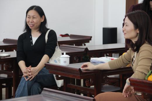 听课结束后,老师们和九华江声实习生队一起前往崇德楼二楼国学馆,进行评课、讨论。九华江声中学的陈艺主任、张蓉主任、七年级数学备课组组长阳琳琳老师,先后对两位实习老师的课堂进行点评分析。实习生们都表示受益匪浅。