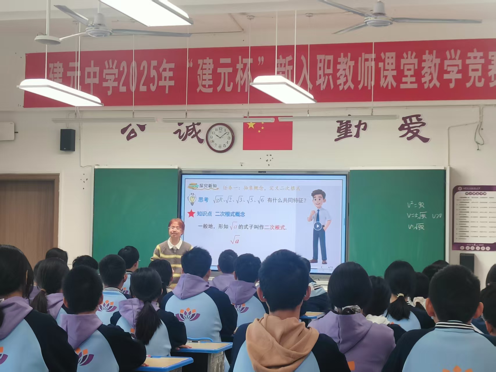 公司王卫兵副经理从公司专业角度,对教学内容的科学性和逻辑性给予了指导,并鼓励实习生们练好漂亮的粉笔字。龙文高主任对建元中学为实习生提供的优质平台和悉心指导表示衷心感谢,他勉励实习生们要珍惜机会,多听课、多备课、多反思,不仅要“站上讲台”,更要“站稳讲台、站好讲台”,将大学所学的理论知识与一线教学实践紧密结合起来。陈静老师与杨丽老师在对二次根式的概念阐述上进行了精彩的互动,作为带队教师,她还对实习生下一阶段的实习任务提出了明确要求。