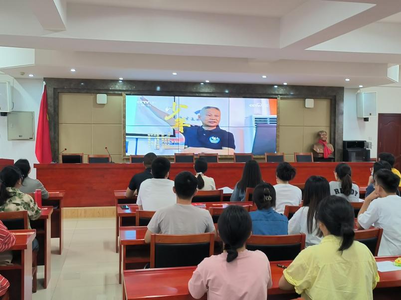 师生们认真学习万步炎教授的先进事迹。观看完视频后,大家纷纷分享对本次活动的心得与收获。