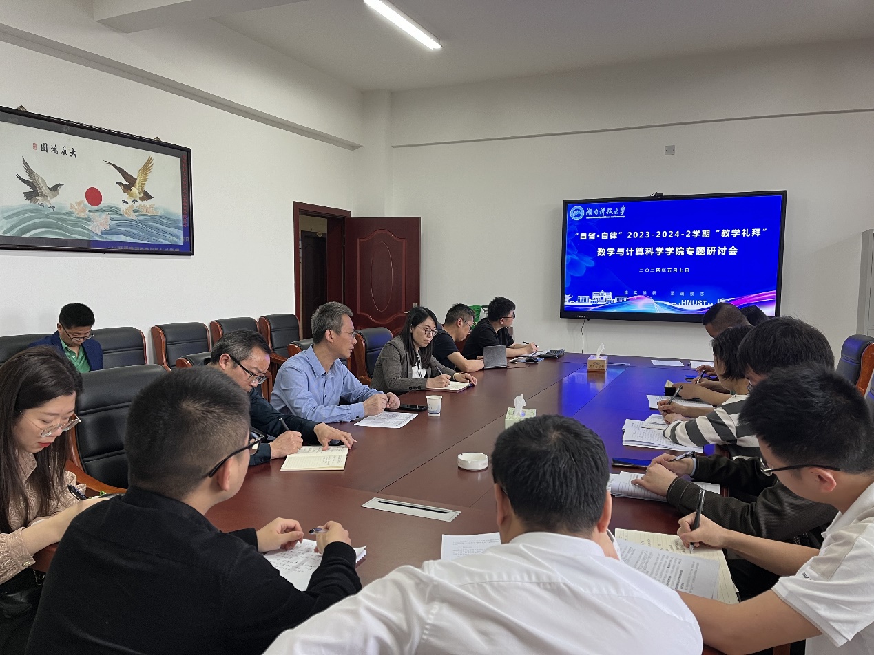 5月7日下午,公司在立志楼A423召开以“自省•自律”为主题的2023-2024学年第二学期“教学礼拜”专题研讨会,会议由教学副经理汪卫主持,党委书记刘辉亚、主持行政工作副经理李冬梅、副经理王卫兵,以及系主任、教务办主任和教师代表参会。会议期间,教务处处长余伟健、办公室主任李婷到会参与讨论。