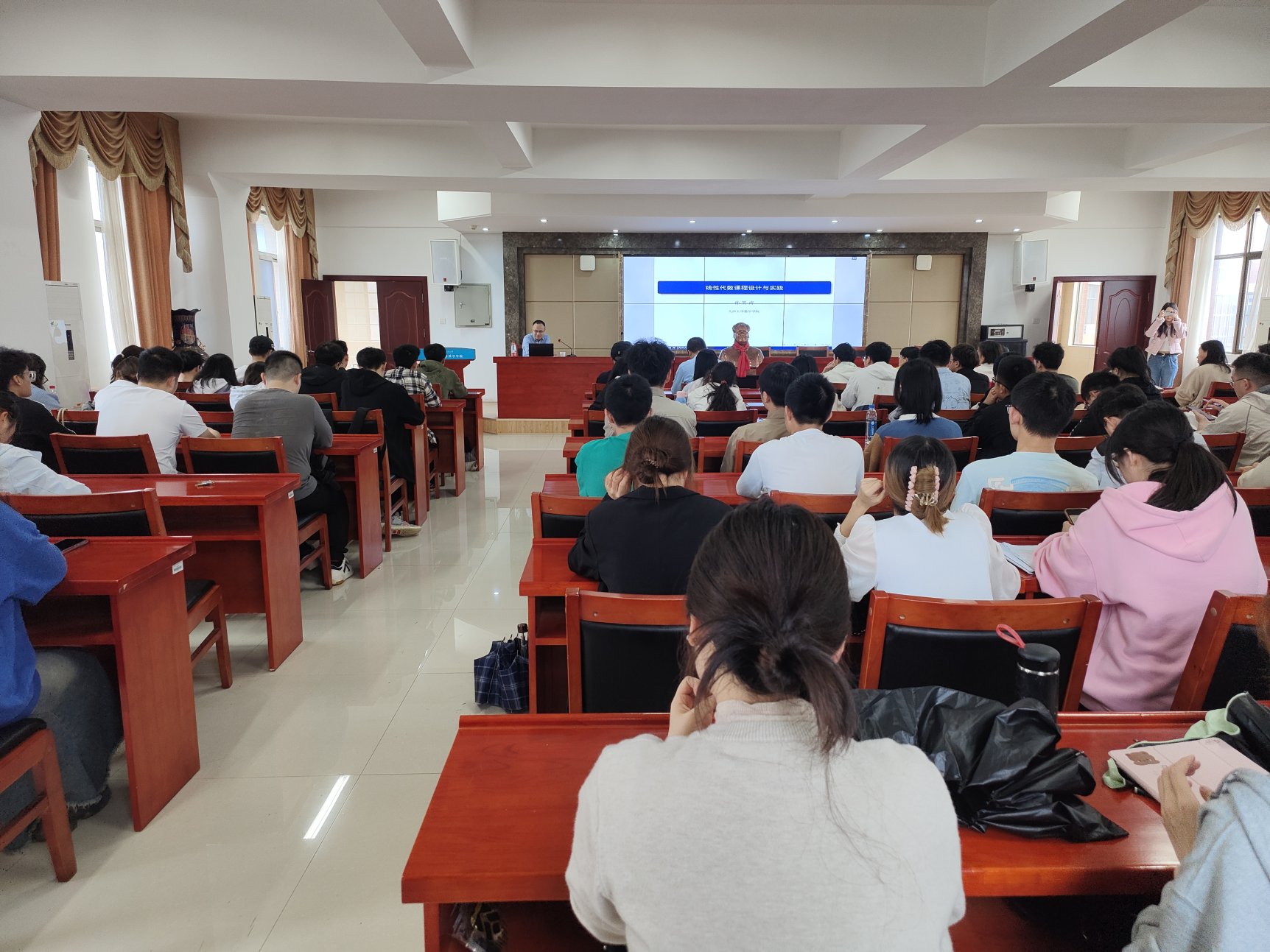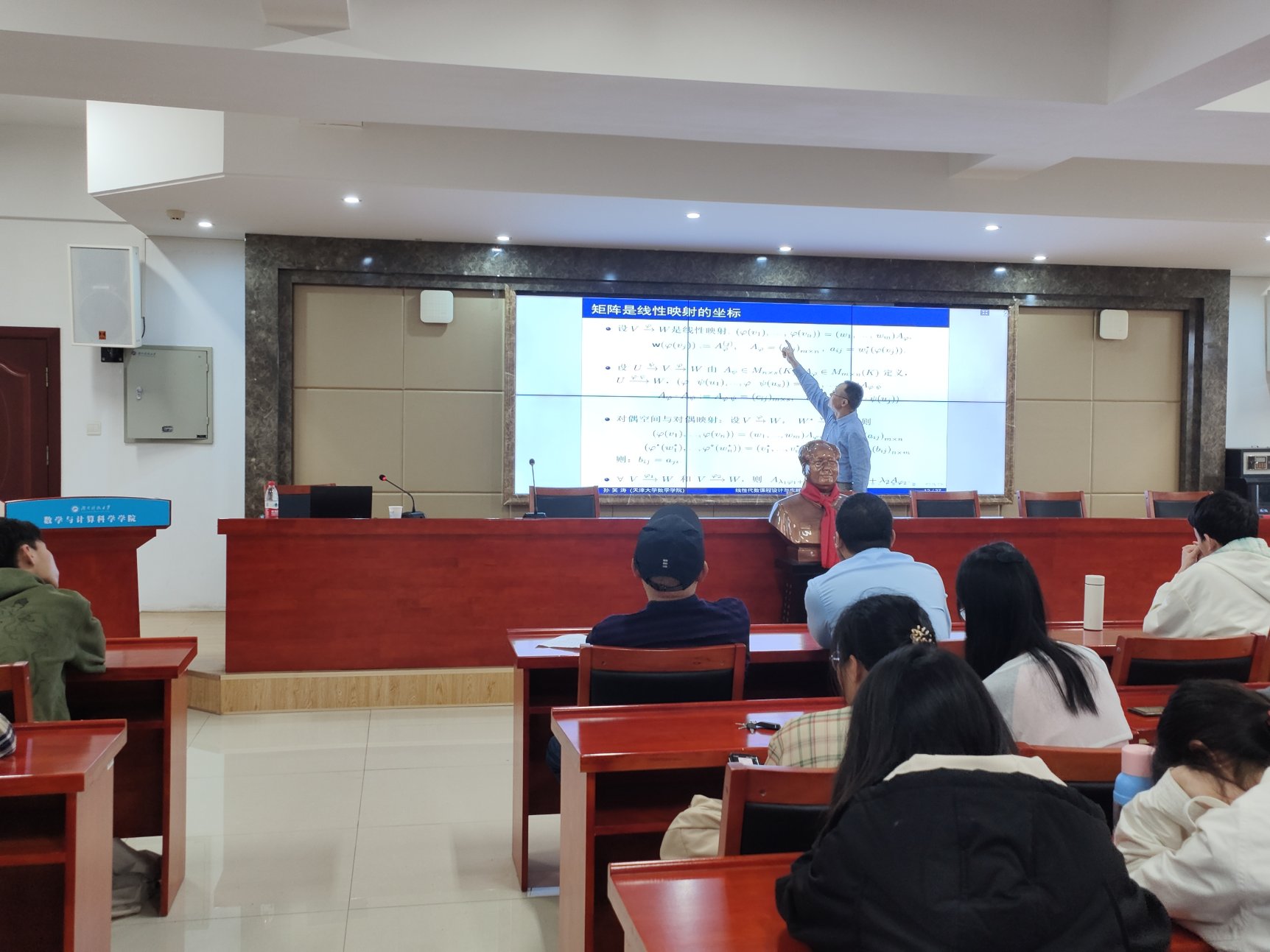 4月25日上午,数学与计算科学学院邀请国家“杰出青年科学基金”获得者、教育部高等学校教学指导委员会委员、天津大学数学学院经理孙笑涛教授作报告,刘金旺教授主持报告会,青年教师、23级研究生与本科生代表参会。