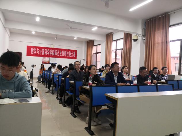 4月22日上午8:20,数学与计算科学学院在立功楼B602,B603,B604教室展开2023年教学技能大赛院级初赛,下午2:00在立功楼B603展开院级决赛,并组织2021级数学与应用数学专业同学及其他感兴趣的同学前来观摩学习。现场到场评委15名、初赛参赛选手45名。选手分为三组进行比赛,每组前5名选手晋级院级决赛,院级决赛前5名选手晋级校级决赛。
