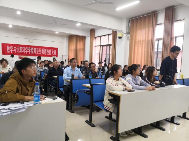 4月22日上午8:20,数学与计算科学学院在立功楼B602,B603,B604教室展开2023年教学技能大赛院级初赛,下午2:00在立功楼B603展开院级决赛,并组织2021级数学与应用数学专业同学及其他感兴趣的同学前来观摩学习。现场到场评委15名、初赛参赛选手45名。选手分为三组进行比赛,每组前5名选手晋级院级决赛,院级决赛前5名选手晋级校级决赛。