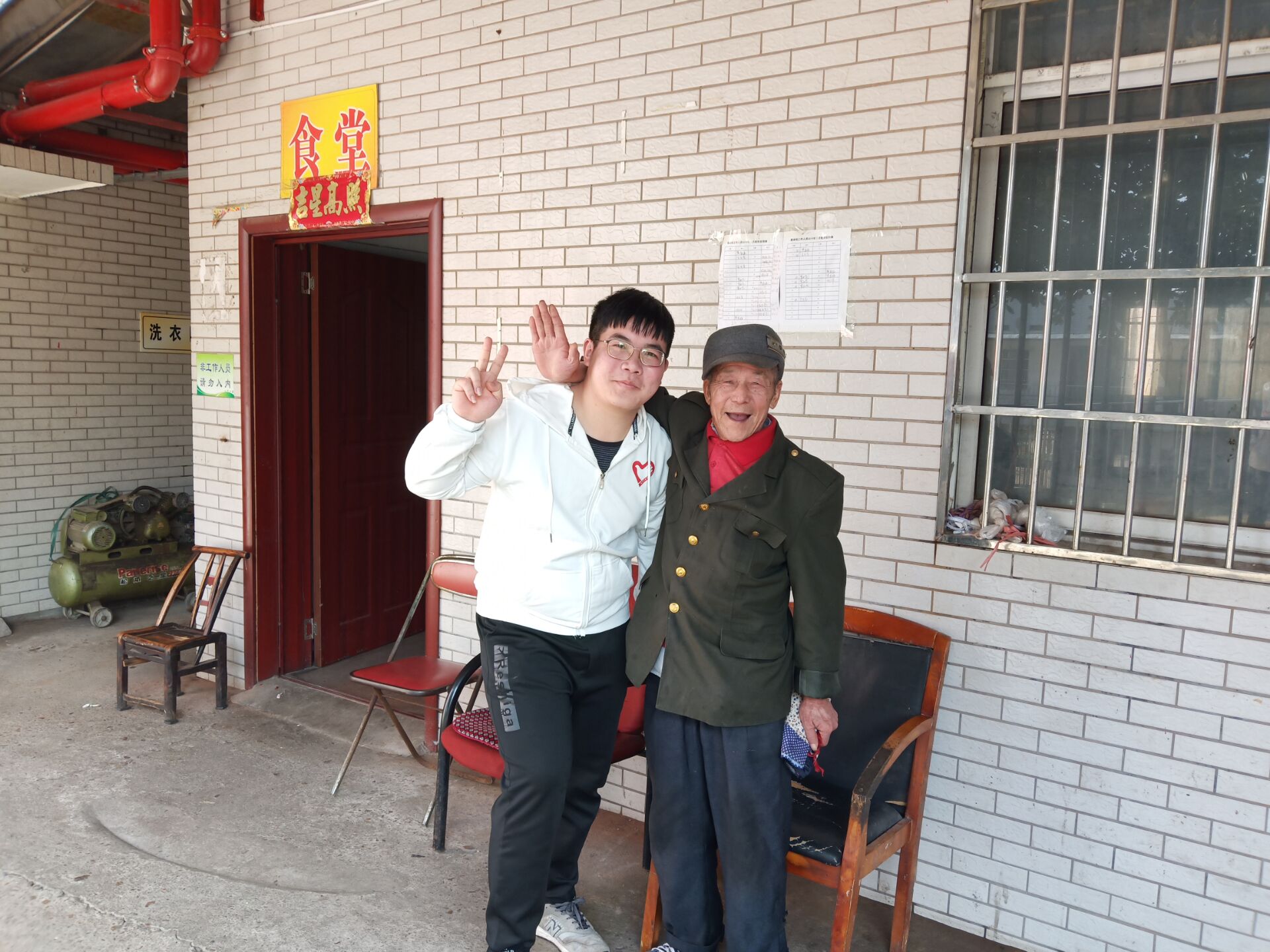 志愿者刘开辛和王爷爷合影